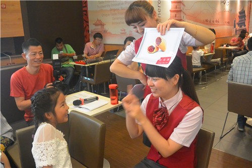 好,同时进行的,除参观以外的家庭,我们做亲子游戏互动——“汉堡蹲”以及“食物竞猜”嗨翻全场!