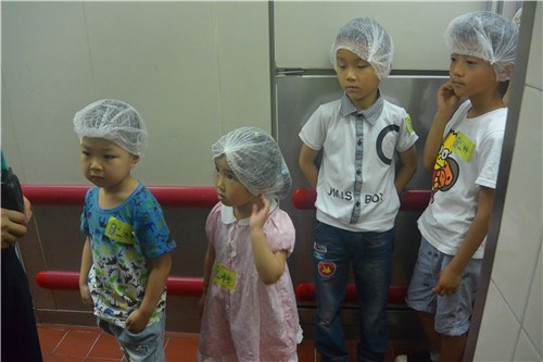 好,下面就进入正题了,“探秘员”的重要任务,探秘之旅开启!我们今天到场率很高,只有一个人没来,提前请假的,大家一定要学习哦!我们本次参观分成3组,一组3-4个家庭进行,尽然有序,并且按照“七步洗手法“洗手后才能进入!讲解员姐姐告诉我们,他们每天都要洗手多次,进入后厨时必须洗手,制作食物前必须洗手,捡起地上的杂物后也必须洗手等等,一切严格按照”七步洗手法“的要求执行。