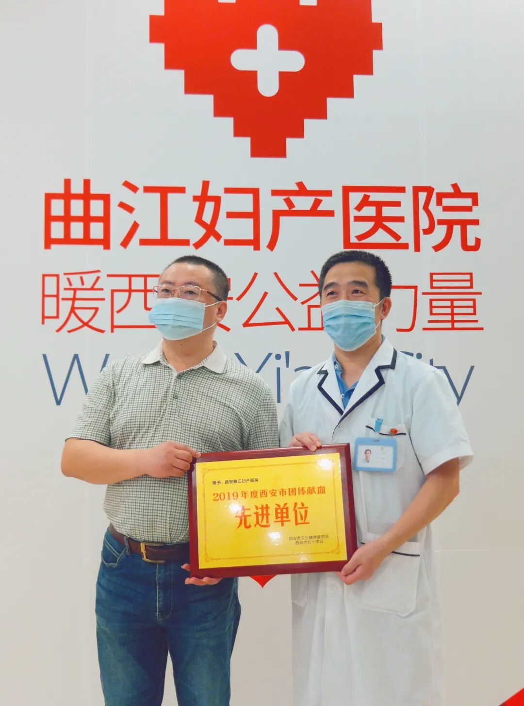 授予曲江妇产医院“2019年度西安市团体献血先进单位”