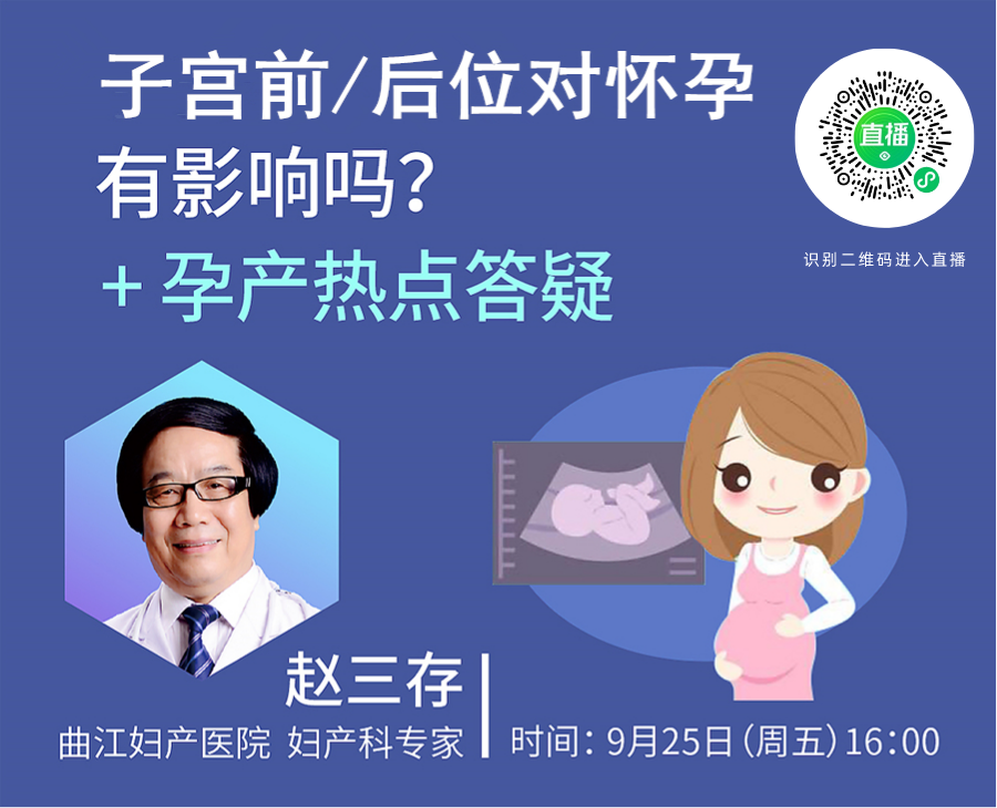 9月25日(本周五)下午16:00,曲江妇产孕产大咖赵三存空降直播间啦!!在线讲解子宫前/后位对“好孕来”会不会有影响,直播中专家还会对妈妈们提出的问题进行一对一线上答疑,妈妈们记得拿好小本本划重点!