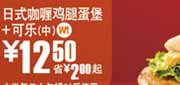 2010年4月5月凭优惠券麦当劳可乐+日式咖喱鸡腿蛋堡省2元起优惠价12.5元有效期: 2010年5月18日4 F! b: I, B# n0 y) i0 B