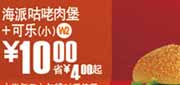 8 x- I2 ?* \0 |) ?2 [: C# w. s4 V10年4月5月麦当劳可乐+海派咕咾肉堡凭优惠券省4元起优惠价10元有效期: 2010年5月18日! s. B" I; A+ L" \. V8 {. F+ X