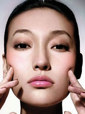 Step1.手指贴脸,由下向上,缓缓地画大圈,并向耳际轻推。这个动作能够为松弛的皮肤带来弹性。
