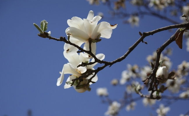 玉兰花是我国特有的名贵园林花木之一,白如玉,花香似兰。玉兰花外形极像莲花,盛开时,花瓣展向四方,使庭院青白片片,白光耀眼,具有很高的观赏价值。