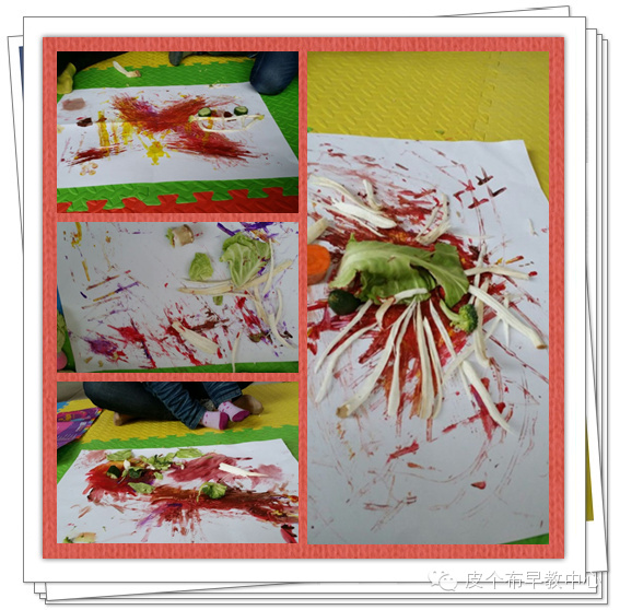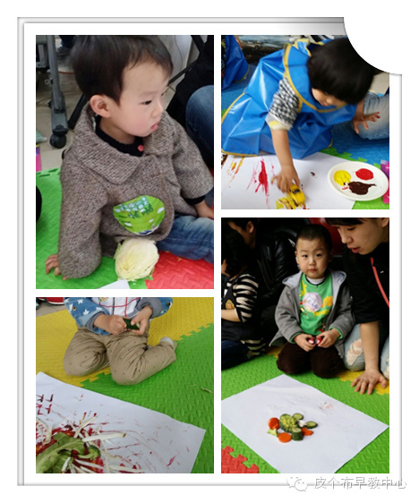 最后一个环节是创意果蔬拼图,宝宝们用各式各样的蔬菜,拼出自己心里最漂亮的图案!