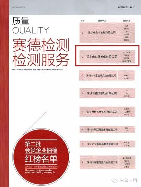 20149“ST”赛德检测报告,对深圳森堡家俬有限公司旗下品牌松堡王国所有产品进行抽检,均合格,并对松堡王国产品中使用的水性面漆白乳胶实木板实木拼接板进行了全面抽检,均合格。