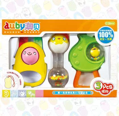 【特价】3C认证 AUBY澳贝 奥贝 婴儿玩具 3只开窗彩盒装 摇铃